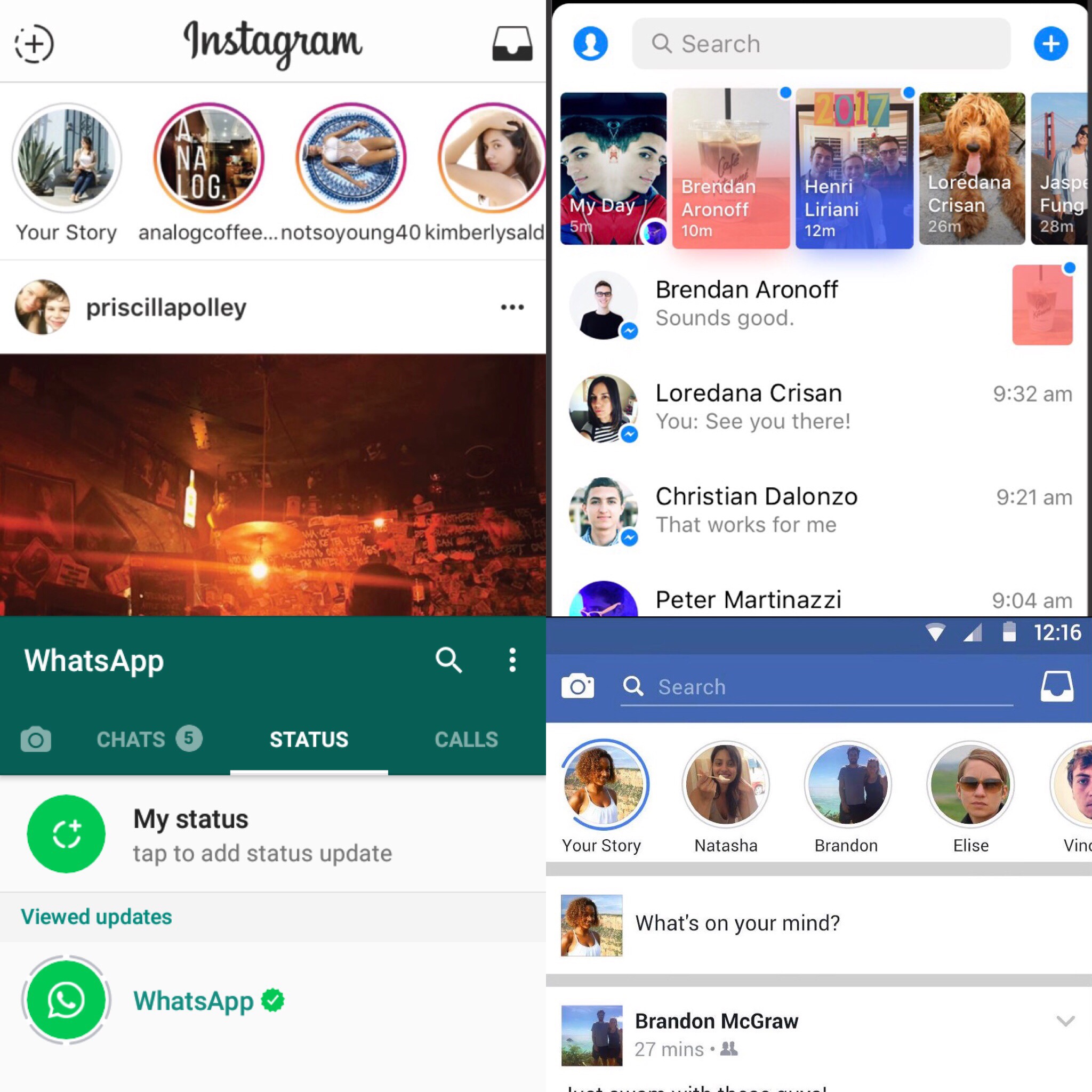 Stories, Shared Days, or Status, all different names for the same feature across 4 different apps. This is what they look like side by side:
