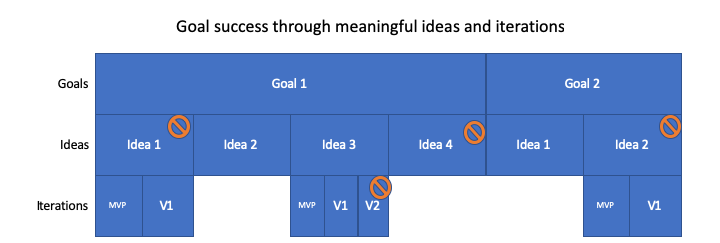 | Increase revenue to X2 | Idea 1 MVP | Increase CVR by 5% by doing new merchandising techniques leading to a revenue increase of X1 | 1 dev, 10 dev days to get infrastructure ready and basic test |
